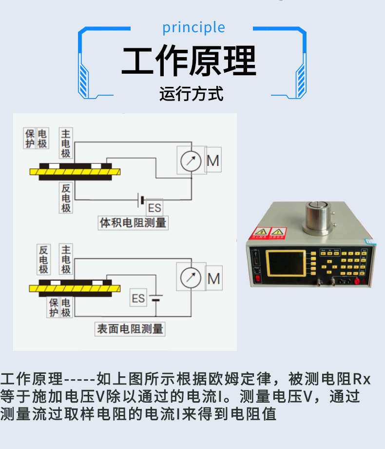 1、接好電源線和測試線:確保電源為220VAC/50Hz,將測試線(紅線為高壓線接紅接線柱, 屏蔽線接電流輸入端)與待測試器器件連 接好, 根據(jù)不同的測量可使用不同的電極; 連接測試樣品時要關電源,以防測試電壓電人。