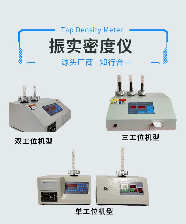 振實密度儀更加生產及研發需求一般有單工位,雙工位及三工位,這幾種常見的類型,工位表示,每次測試樣品的數量,比如單工位每次只能分析一個樣品,雙工位及三工位每次可以分析2-3個相同的或者不同的樣品,這樣就可以提高效率.