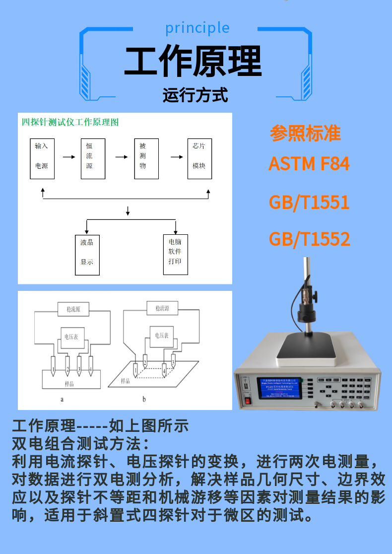 四探針電阻率/方阻測試儀一般來說所有的四探針測試儀方法都不一定相同,不同方法對測量準確性及精度影響比較大的,常見的有單一計算方法和組合計算測量方法;組合方法更加優在準確性和重復性.特別是應用于高要求的晶圓類產品的測量時突出表現.
