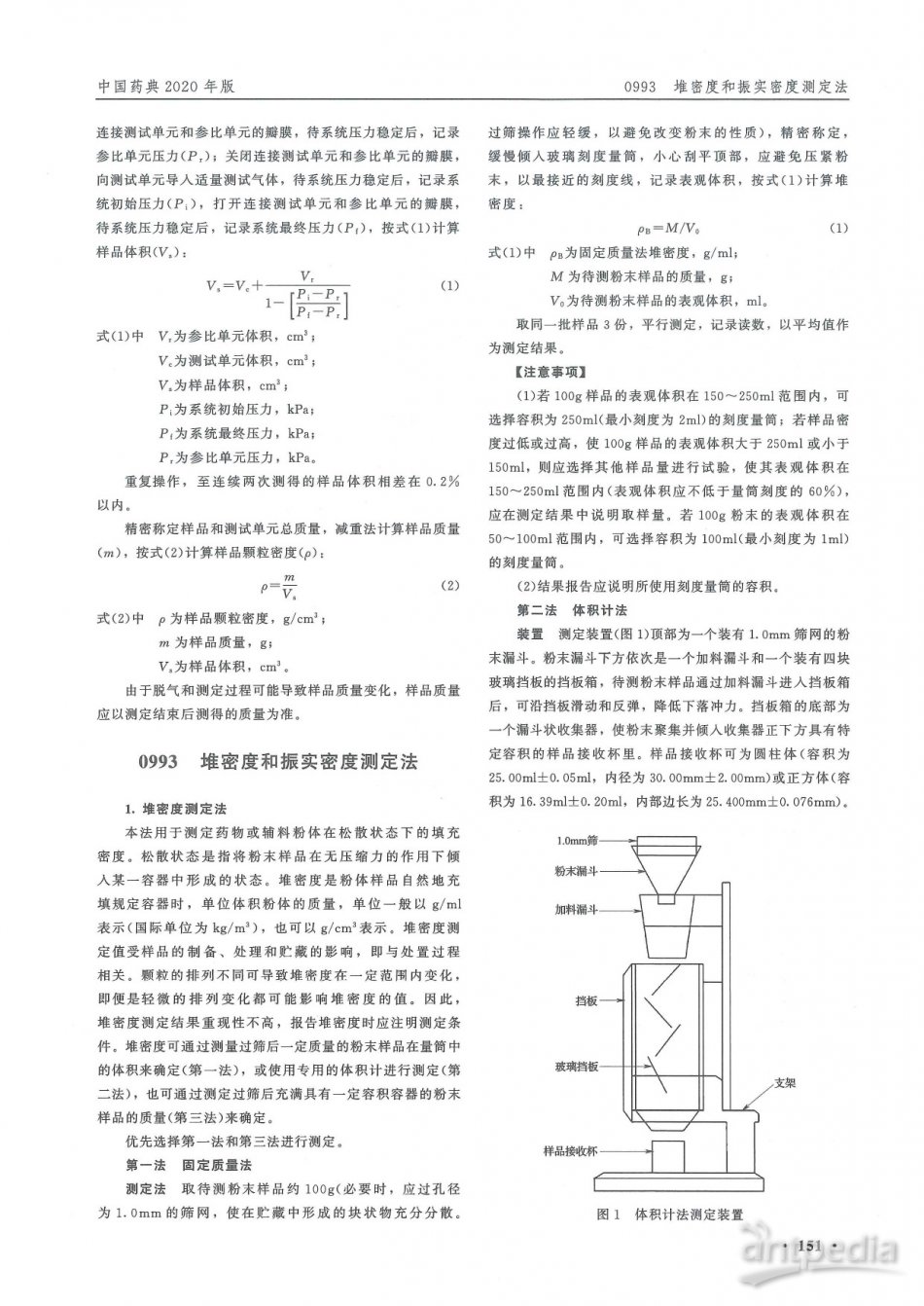 《中國藥典》2020年版,新增了粉末樣品堆密度和振實密度測試的方法、裝置和要求。本文中,有關(guān)堆密度和振實密度測試的內(nèi)容