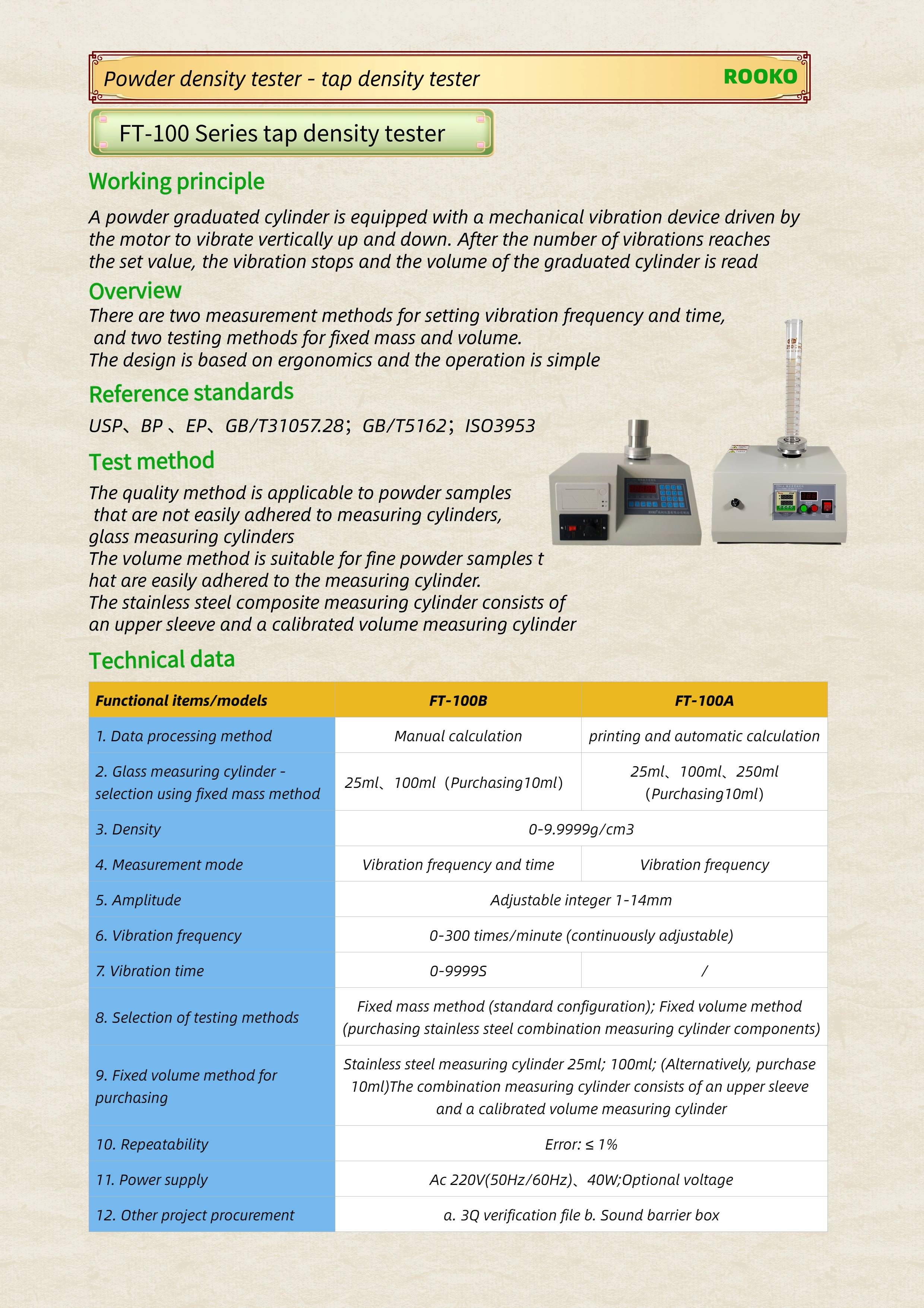 FT-100A 100B Series tap density tester