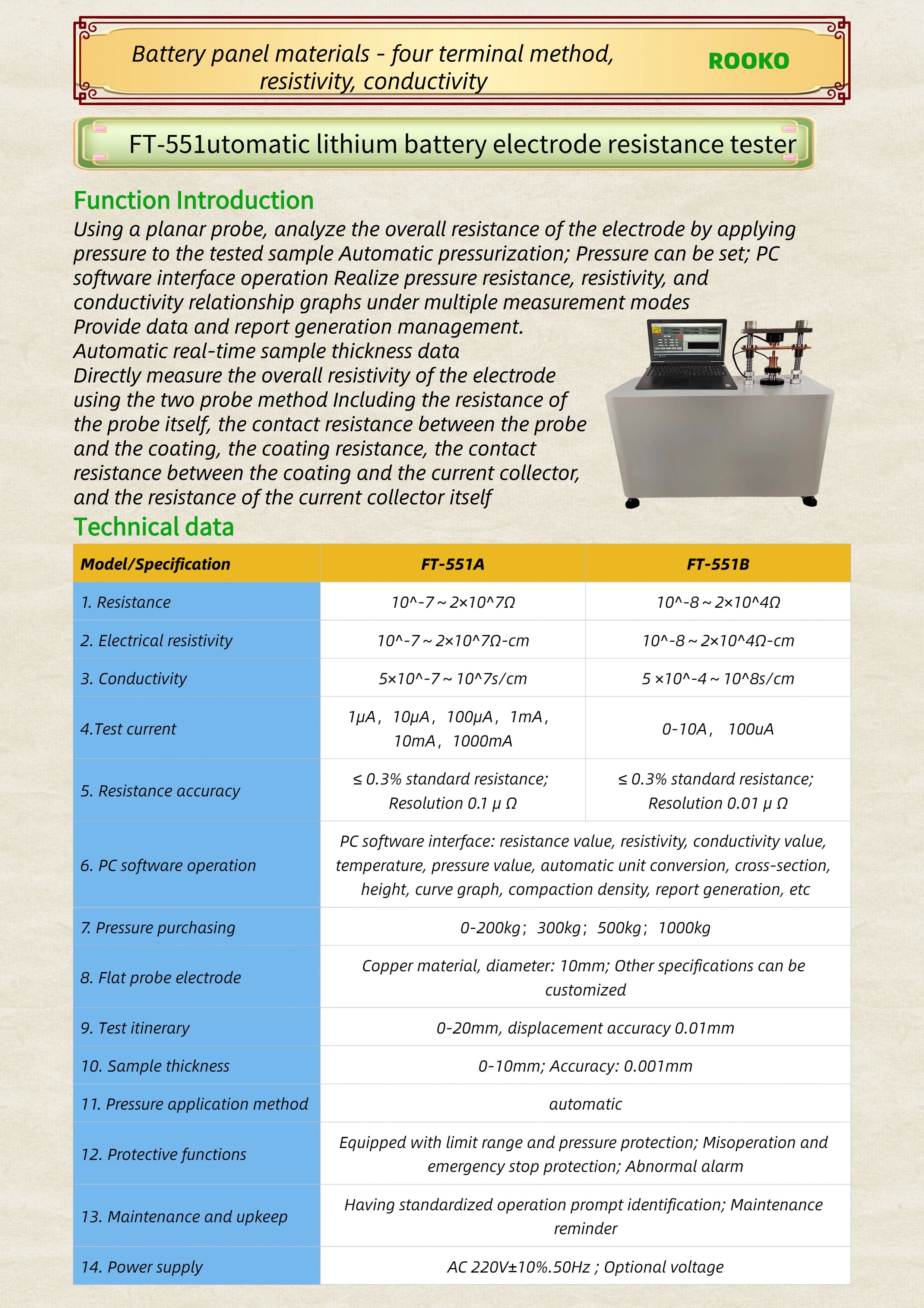 FT-551 utomatic lithium battery electrode resistance tester